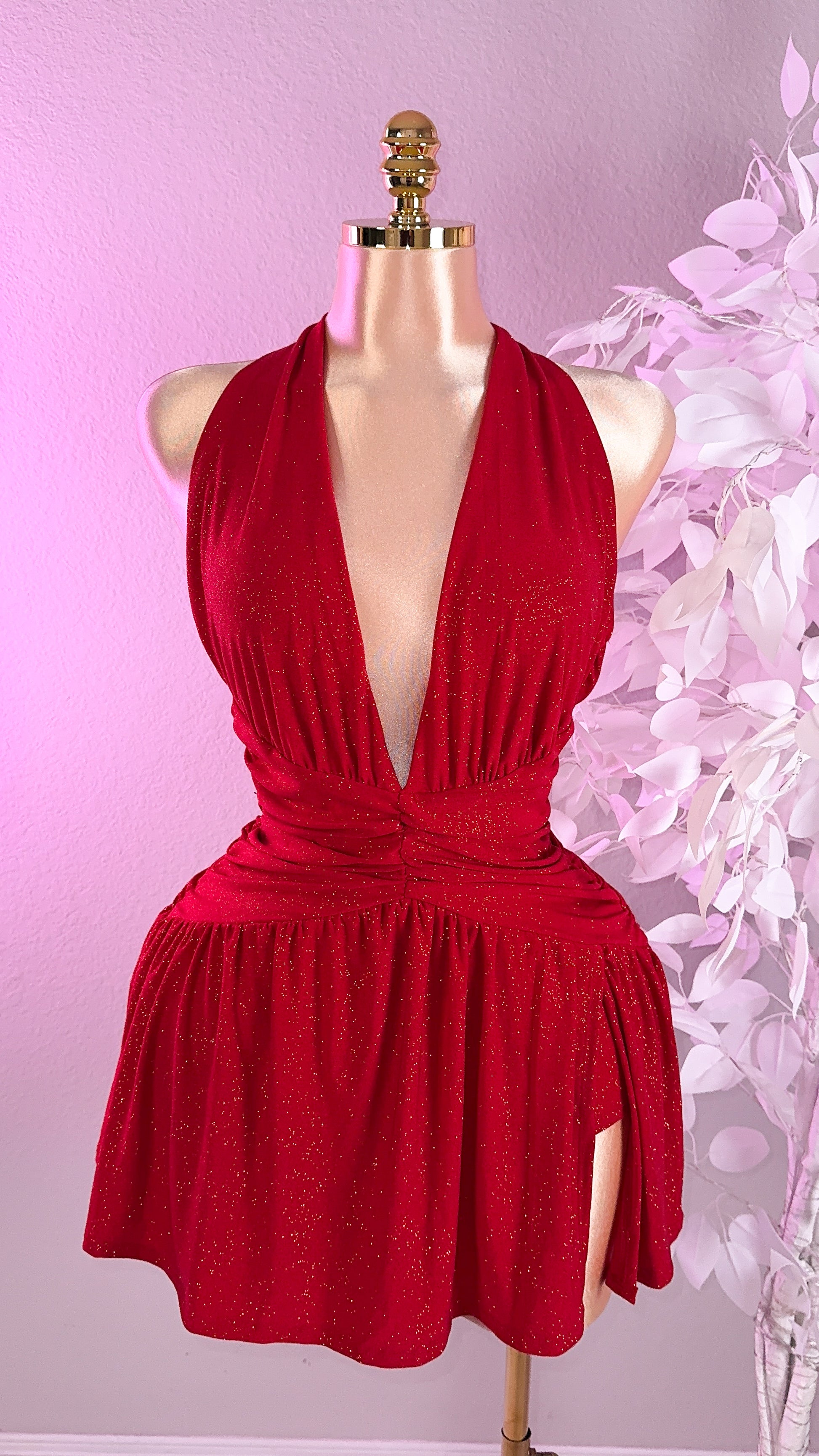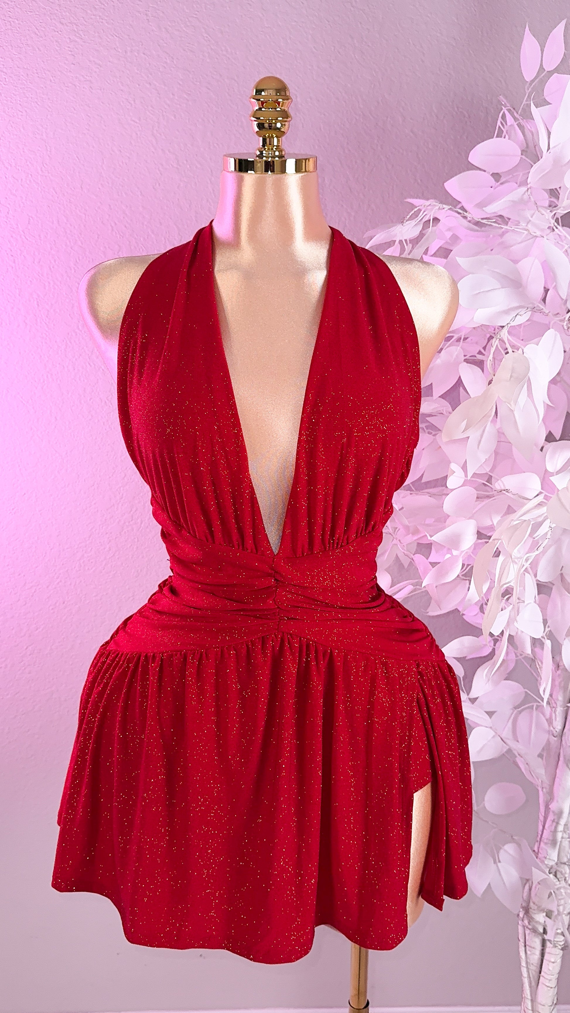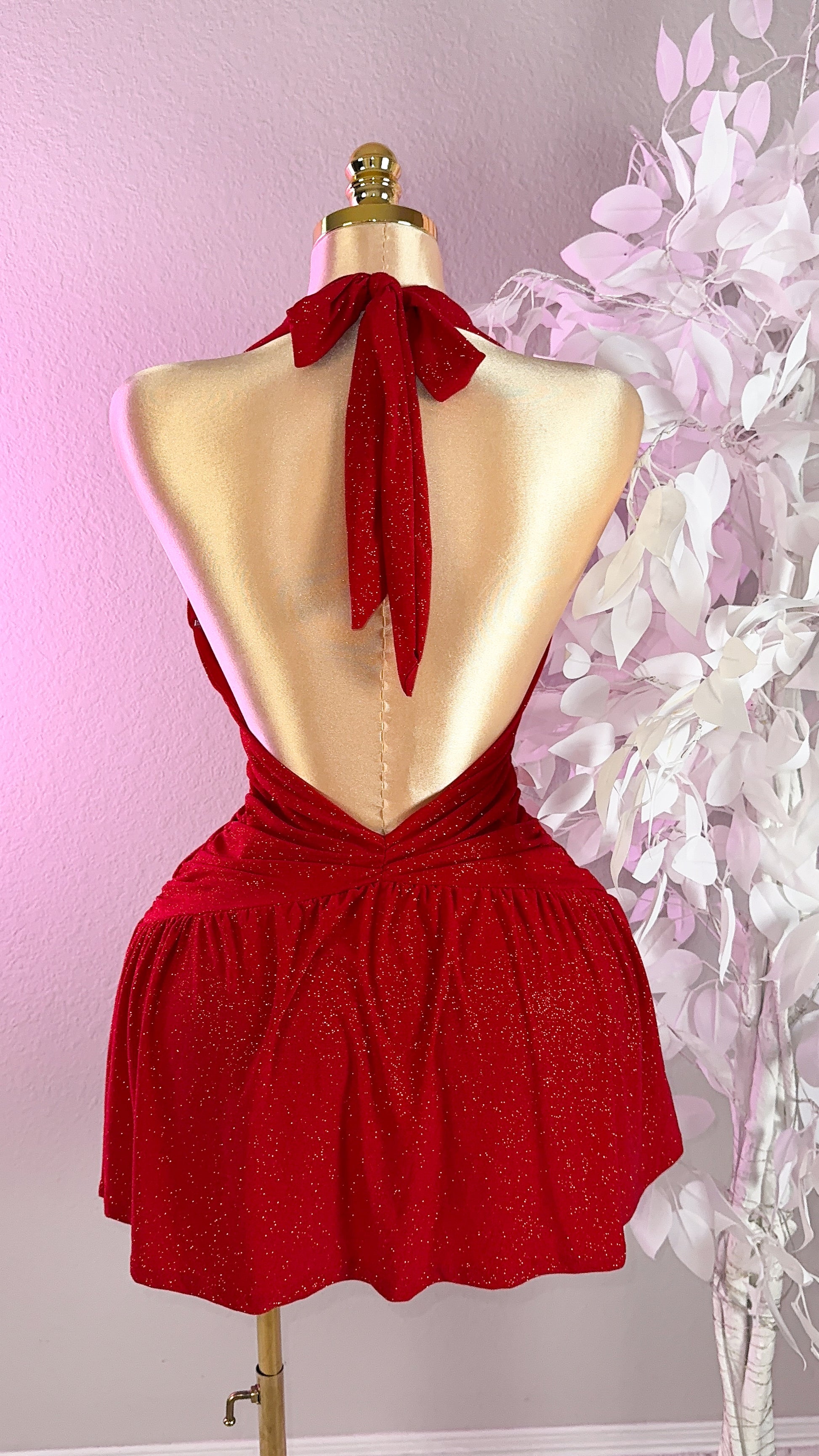 Lia Glitter Romper Dress - Red