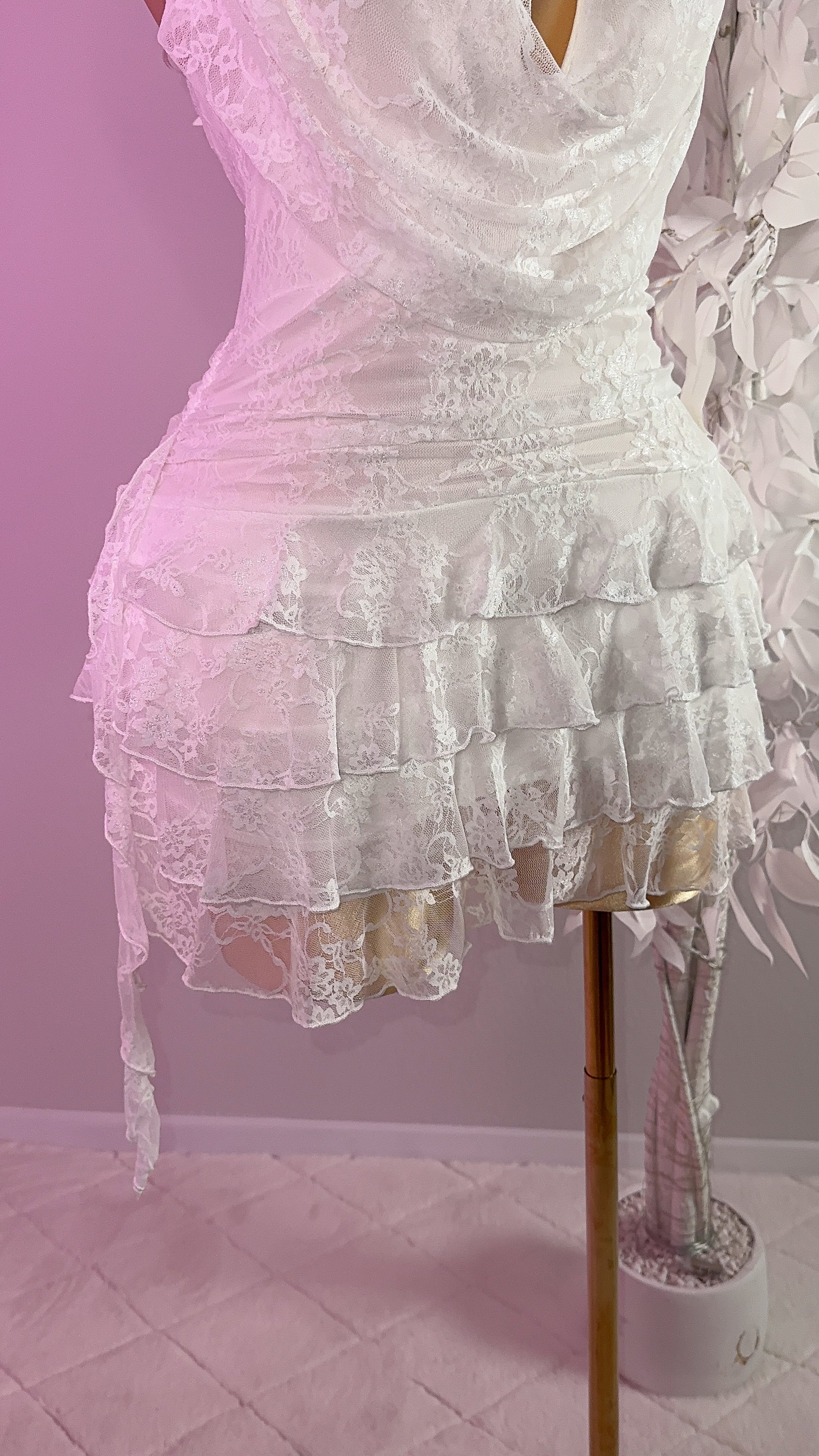 The Teresa Floral Lace Mini Dress in White features floral lace and ruffle detailing, ideal for special occasions. This romper dress combines elegance with comfort, offering a tailored fit that enhances movement and style!